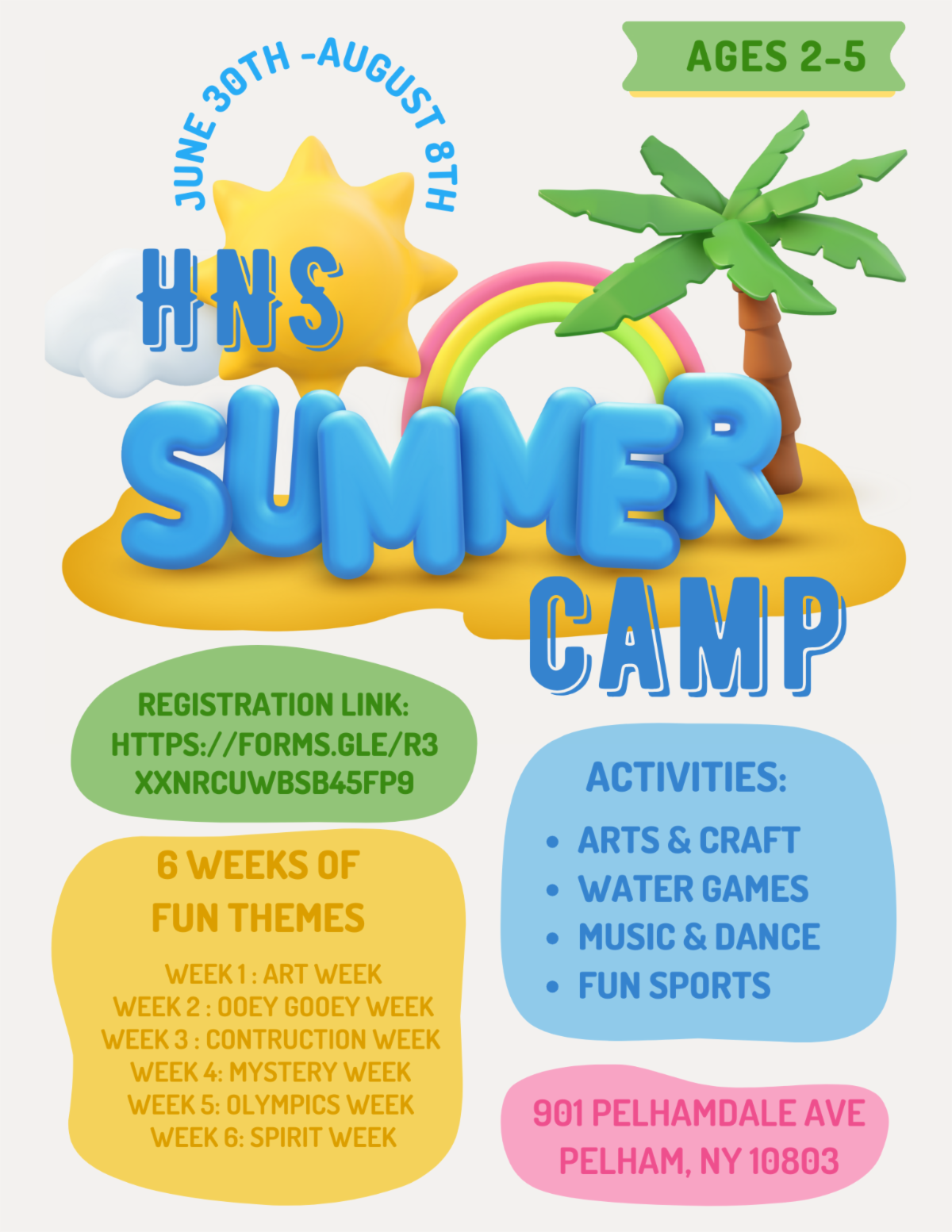 Don’t forget to sign up for Summer Camp at HNS! Camp activities include Arts & Crafts, Water Games and Sports, along with a different theme for each week.